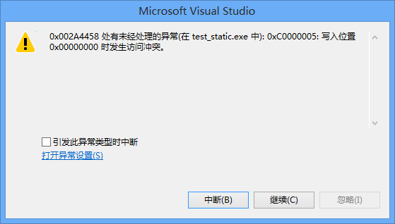 pf虽然经过了初始化,但指向的是内存空间的0位置,而不是指向一个float型变量的内存区域,所以运行时会出错,如下所示: