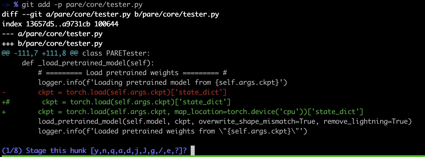 需要注意的是,git有一套默认的将文件中所有修改分成不同hunk的机制,但我们也可以将默认机制分的太大的hunk分割为多个小的hunk,这样能更精确地控制提交的粒度。